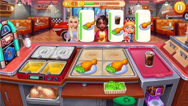 3、拥有丰富多样的操作玩法,随着游戏进程逐步开设更多连锁餐厅,完成各项任务,满足美食爱好者的期待
