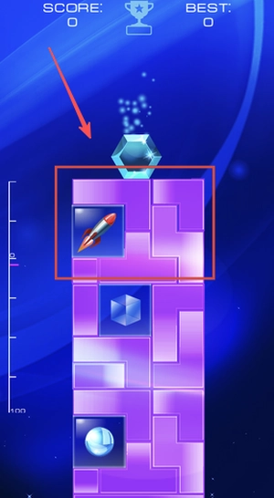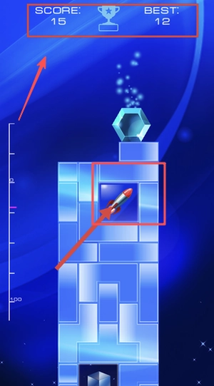 3、留意顶部SCORE和BEST数值的变动,在合适的时机使用火箭道具来助力,努力打破自己的最高分记录。