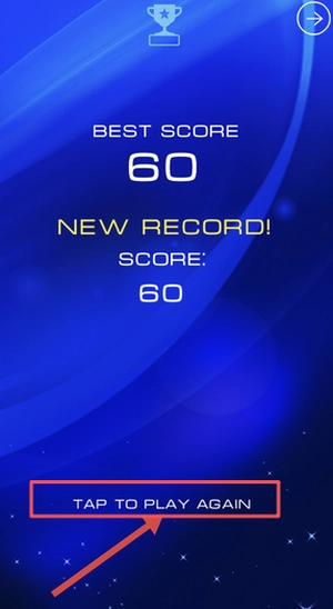 4、在结算界面点击“TAPTOPLAYAGAIN”,即可立即重新开始游戏,继续挑战更高的分数目标。