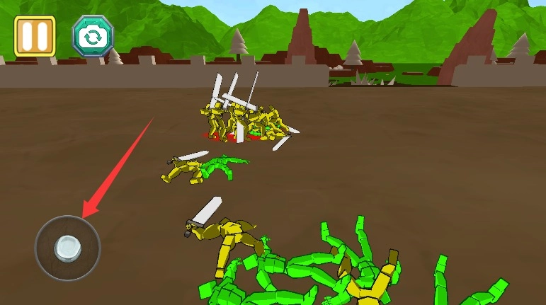 3、滑动左侧摇杆能够切换战场视角,这样就可以实时查看战况的变化以及双方的血量情况。