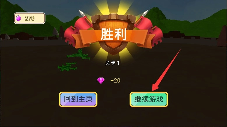 4、获得胜利后系统会发放钻石奖励,点击“继续”即可挑战后续的进阶关卡。