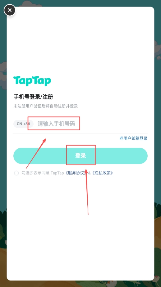 2、勾选同意后,在界面上找到登录按钮并点击,进入登录相关的操作界面,为后续的登录操作做准备。