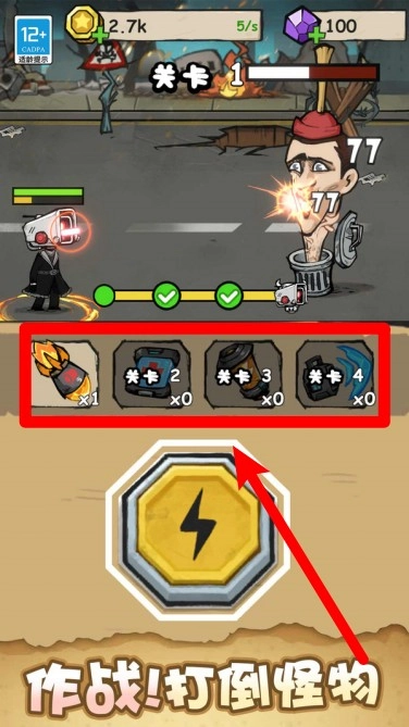3.战场资源收集:每次击败怪物都能获取金币和装备,这些资源可用于升级和强化机器人的配置,助力打造更强大的战力,从而轻松攻克高难度关卡。