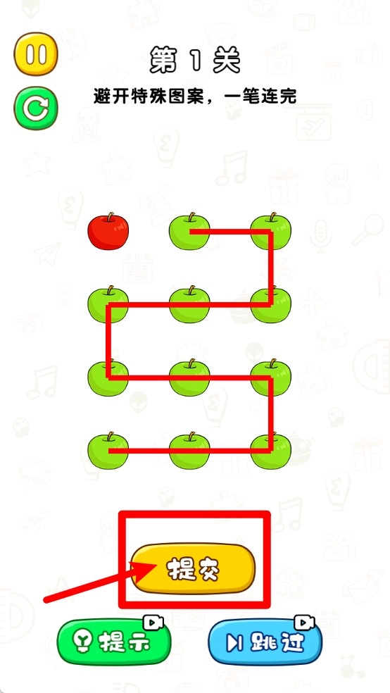 1.提交机制:点击下方的「提交」按钮后,系统会马上对图案是否满足要求进行判定,随后进入闯关流程。