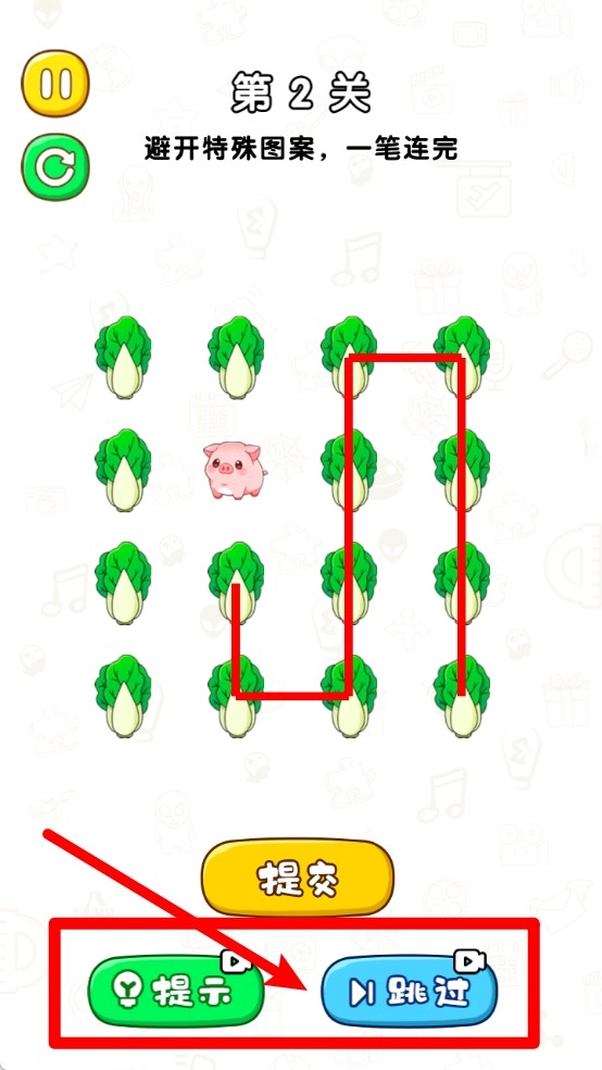 3.辅助功能:左下角的「提示」与「跳过」功能可通过观看广告解锁,能在卡关时助力继续闯关。