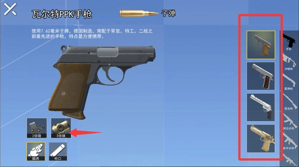 2、进入装备选择界面后,要认真挑选初始武器,建议选用稳定性较好的冲锋枪,这样能更轻松地快速掌握后坐力控制技巧。