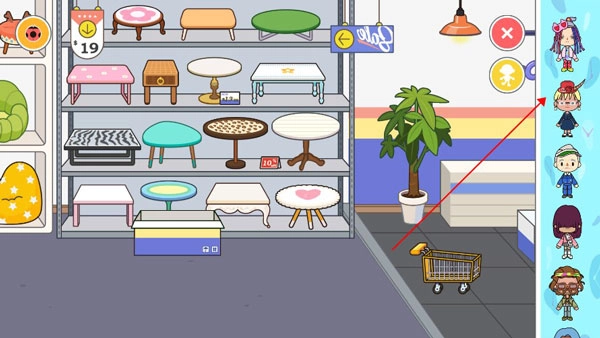 家具物品挑选完成后,点击页面右上角的人物功能,然后在该功能里选择一个人物。