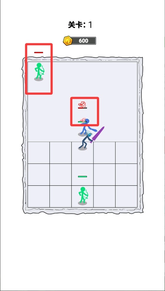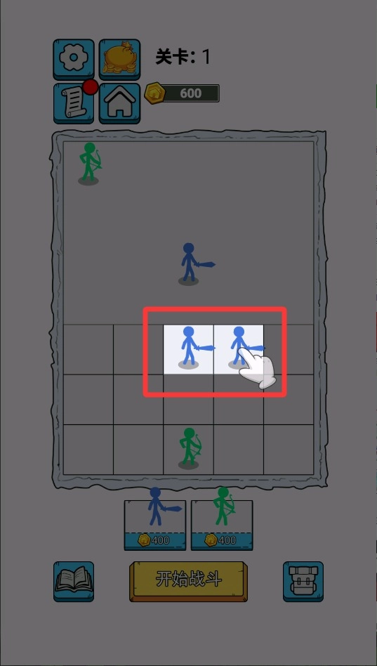 1、进入游戏后滑动屏幕,把相同等级的战士合并,每次融合都能增强角色的战力,要注意保留高星级的单位来应对强大的敌人。