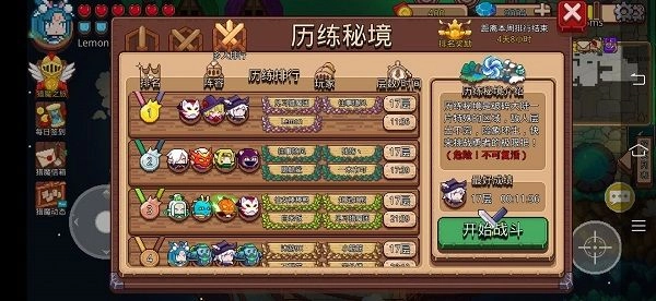 -历练模式设有层层挑战,你可以和其他人一起冲击最高排名。