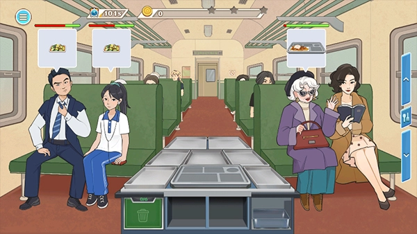 时代绿皮车是一款怀旧主题的快节奏烹饪模拟游戏,玩家需要为绿皮火车上的旅客制作并供应美味食物。游戏中融入了泡面、肉夹馍等全国各地的特色美食,食材会随着玩家等级提升不断更新。每种美食都有特定的制作时间,玩家需合理管理制作流程,在忙碌的操作中赚取金钱;积累足够金钱后可升级装备,进而更高效地制作多样美食,满足顾客需求。