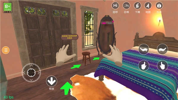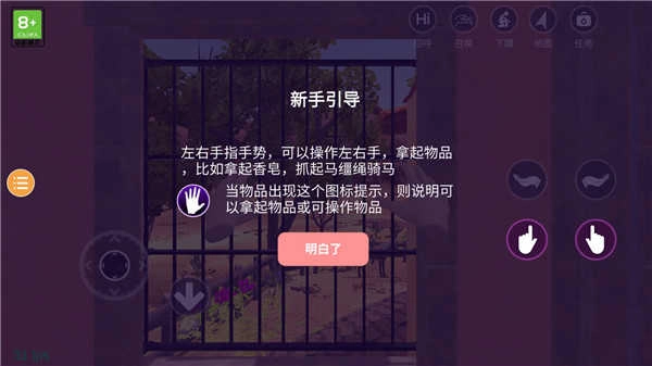 3、通过调整左右手手指的姿势,就能操控虚拟的手去拿起物品。当物品左侧出现对应的图标提示时,就意味着该物品可以被拿起或进行相关操作。