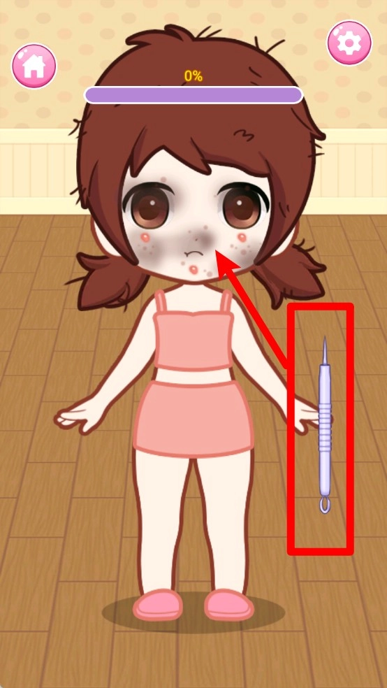 2.借助右侧的工具,清理角色脸部的脏污和瑕疵,完成基础护理环节,为接下来的化妆与穿搭营造干净的前提条件。