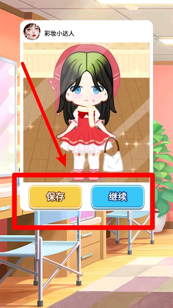 3.造型完成后,你可以点击“保存”按钮来留存成果,也可以选择“继续”去挑战下一套主题造型任务。