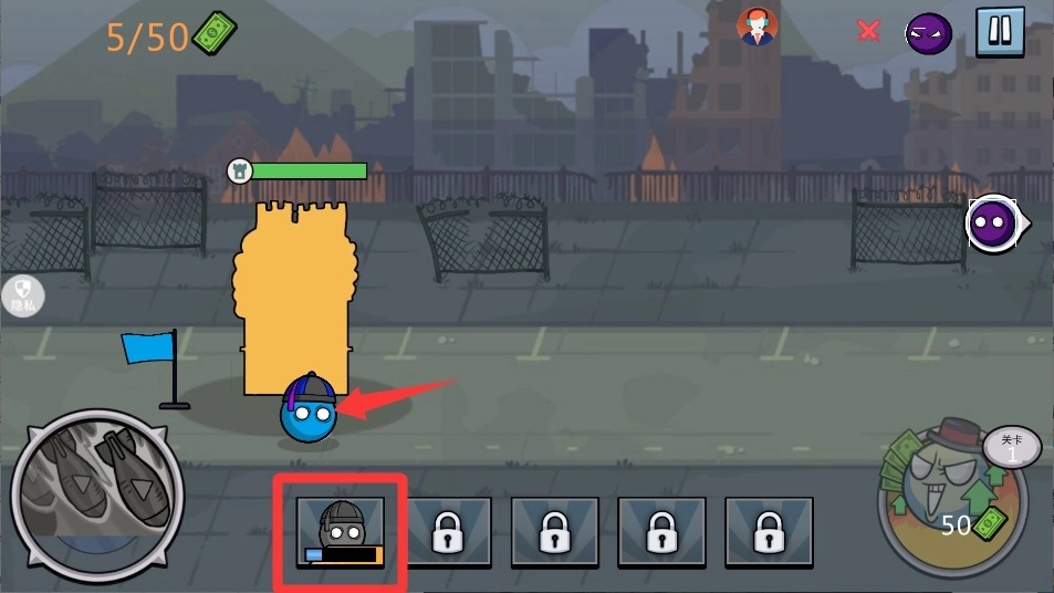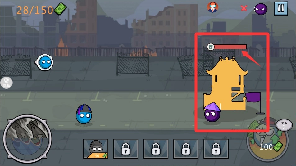 4、准备时间一结束就立刻发起进攻,指挥小球朝着敌人的营地冲过去,只要把对方颜色的球全都撞飞就能顺利通关。