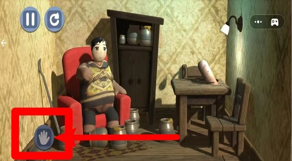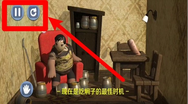 2.点击界面左下角的手掌图标,就能操控主角伸出手去勾取焖子,要留意操作的节奏,防止焖子掉落。