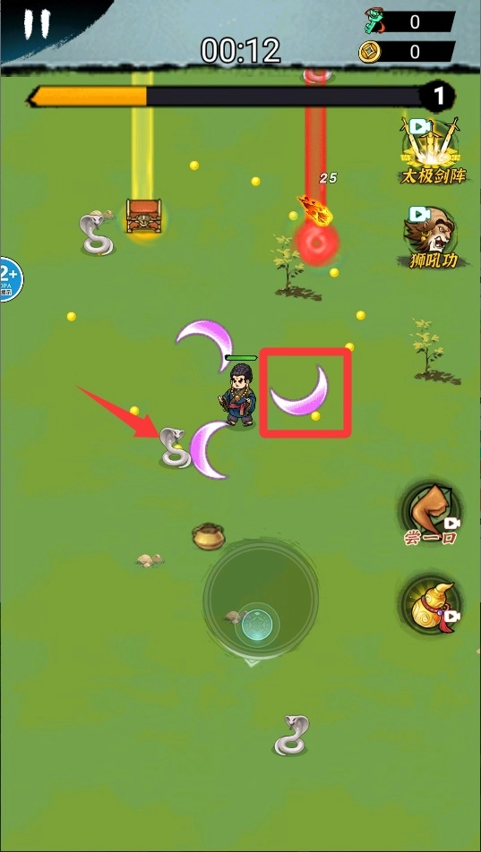1、进入游戏后,按住屏幕滑动即可操控角色移动,角色会自动挥动镰刀清理周围的杂草,要注意避开突然出现的石块障碍物。