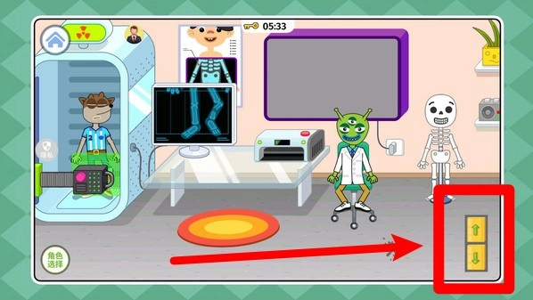 3.点击右侧的上下箭头能够控制电梯移动,从而前往不同楼层去探索更多科室以及有趣的设施。