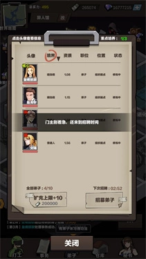 核心在于招募资质优异的弟子为你效力,不管是对他们进行培养,还是派遣执行任务,都离不开弟子作为载体。