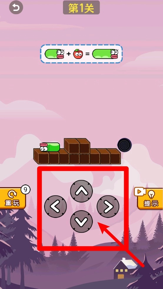 2.屏幕中央的方向键可控制蛇身上下左右移动,需先吃够所有苹果,再前往黑色传送洞口完成通关。过程中要留意狭窄地形,把握好转头时机,以防蛇身自我封堵。