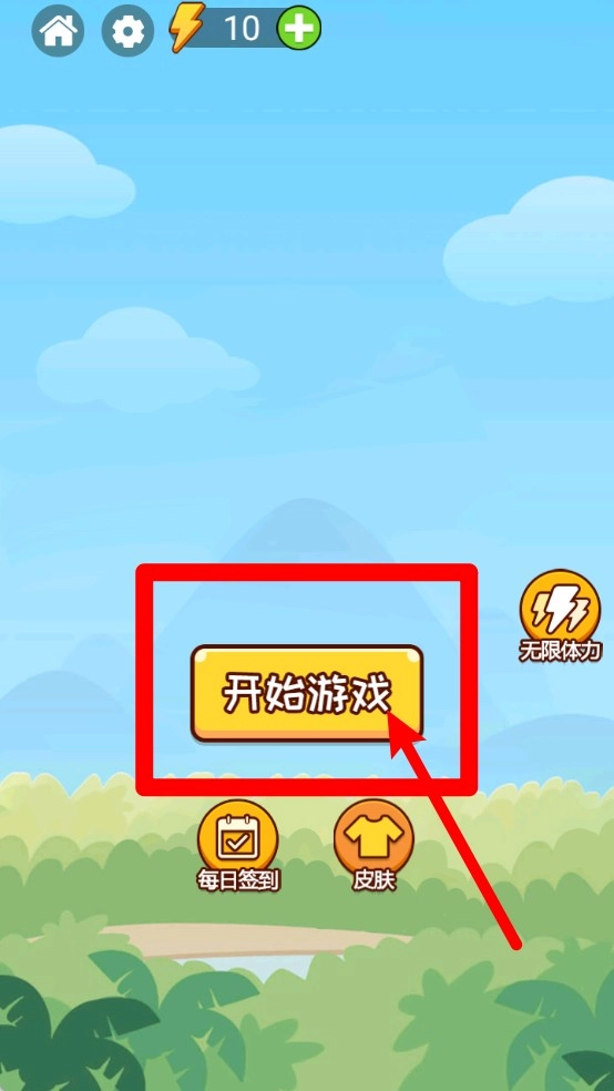 1.主界面点击“开始”按钮就能开启跑步,左上角是设置和体力显示区域,下方可以完成每日签到以及解锁皮肤,建议在开始跑步前先完成相关配置。
