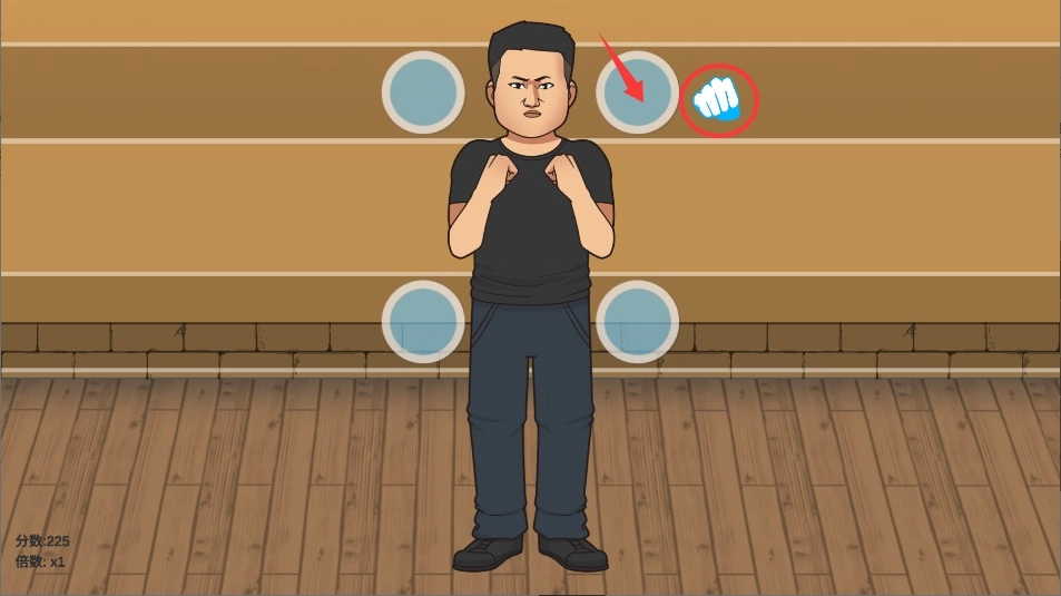 1、进入后点击开始按钮,留意屏幕上拳头摇摆的运动路径,找准最适合的出手时机。