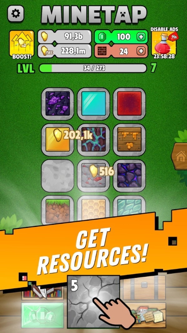 2、提升挖掘工具的等级以获取奖励,收集各类资源来构建全新的世界。
