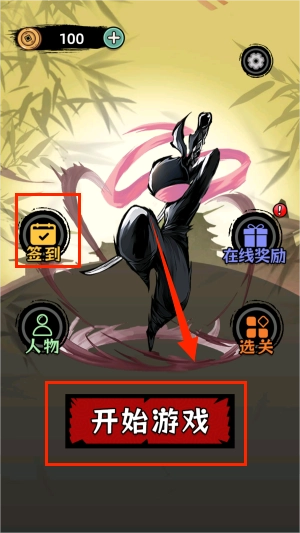 1、点击开始。左边有签到可以领取奖励。