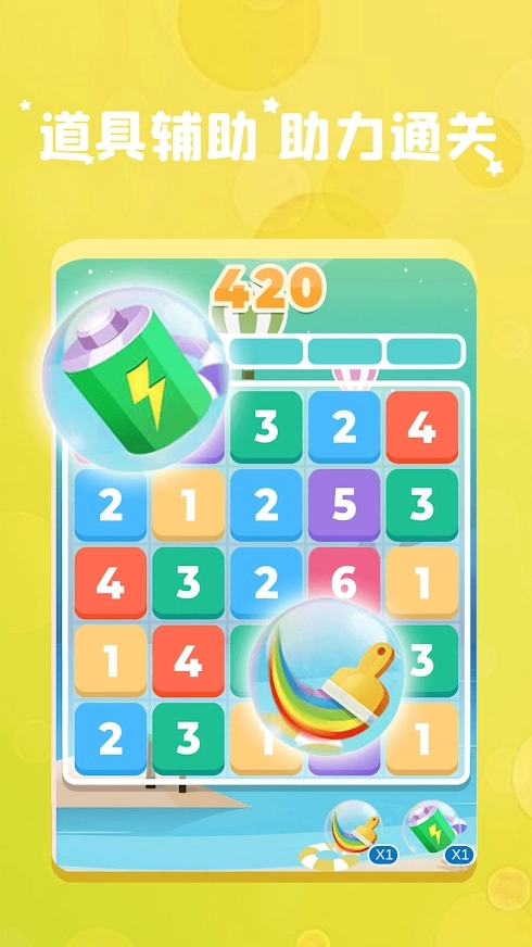 3、把三个相邻的相同数字加起来,尽量合成更大的数,去完成关卡的挑战任务。画面清爽又简约,能让人纯粹地享受其中的乐趣。