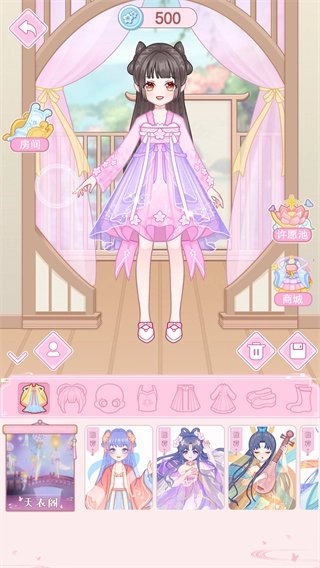 3.雅致的房间:为公主精心打扮之后,也别忘记装饰她的房间哦!所有的背景和贴纸都能随心使用,快来为她打造一个最可爱的房间吧!