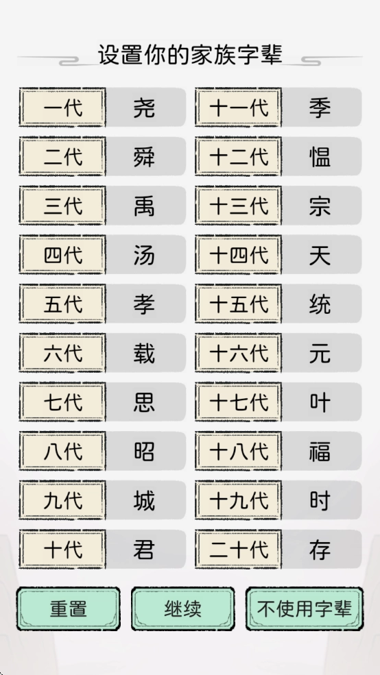 2、家族字辈可自主设定,每一代都能自行决定是否设置,也可以选择不使用字辈。