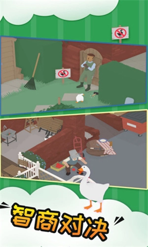 2、别出心裁的动作设计,还有各种充满趣味的搞怪任务,你需要灵活操控大鹅,在公园的长椅之间穿梭自如。