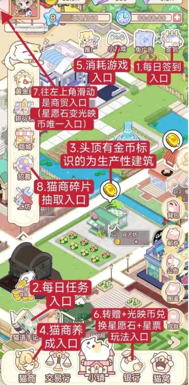 3、游戏里有丰富多样的猫咪任务可供玩家挑选,玩家得和猫咪携手完成这些任务,像寻找遗失的物品、处理城镇里的麻烦事以及照料生病的猫咪等。