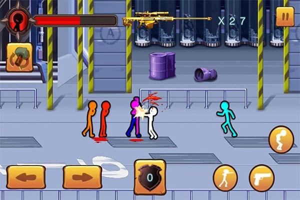 2、中白色的火柴人凭借精湛的技术将战胜所有敌人,玩家通过熟练掌握火柴人的动作与方向,能给予所有敌人沉重的打击。