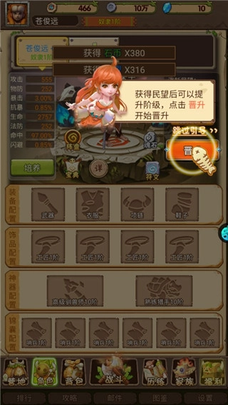 5、然后通过获得的名望可以提升角色阶级;