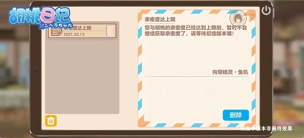 每一级亲密度都对应着一项尚未解锁的新功能呢~亲密度越高,桃桃们能解锁的互动玩法就越丰富哦!比如亲密度到4级,就能和胡桃聊天啦;亲密度到6级,就可以给胡桃安排上大家期待已久的打工卡(把它放进胡桃的包包里,说不定就能打工攒点零花钱呢~);等亲密度到7级,还能在便利店买小卡带,和胡桃PK谁才是游戏高手!