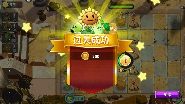 10、成功击败所有僵尸后,关卡获胜并得到对应的奖励,这些奖励包含金币、道具或者解锁新植物的机会;