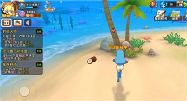 2、其中螃蟹、贝壳、椰子可在海滩边直接拾取,苹果和浆果则需从农田旁的果树上获取。