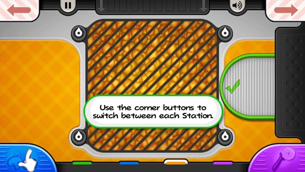 9、烤披萨时要留意火候,等左下角的“火”图标变成橙色,就可以把披萨拖到切割站进行切割了。
