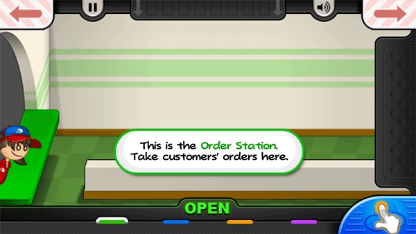 7、完成教学环节后就能正式开始操作,点击“takeorder”按钮把客人所需的食物记录下来。