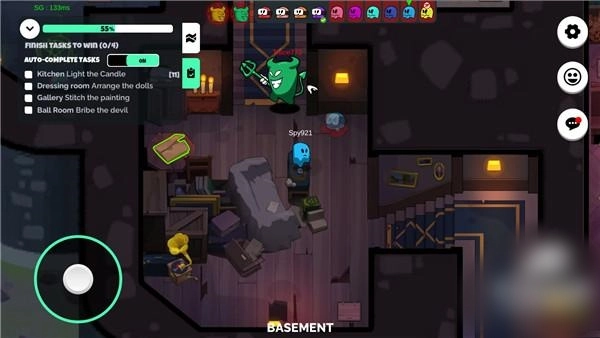 通过滑动轮盘操控角色,在神秘庄园里自由移动,完成指定的任务。