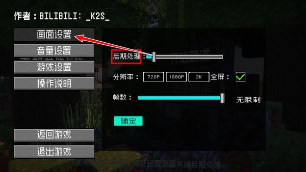进入设置界面后,找到画面设置选项,接着把【后期处理】的滑块拖到最左端,再将分辨率调整至720p。