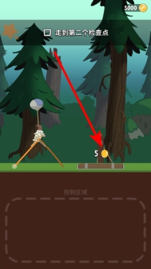 2、本关卡的目标是抵达第二个检查点。你需要操控角色踩着高跷前进,途中要避开各种障碍,朝着箭头所指的检查点方向移动。一旦成功到达,就能推进至下一关,并获得金币奖励。