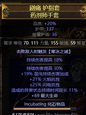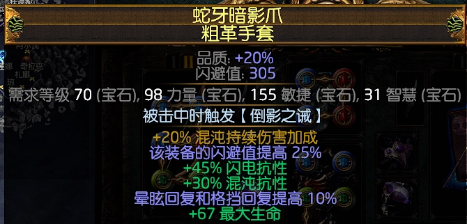 手套方面,建议优先选择护甲基底的。这类手套能补充生命值、抗性以及伤害属性,毒雨技能适用的手套可以直接使用。
