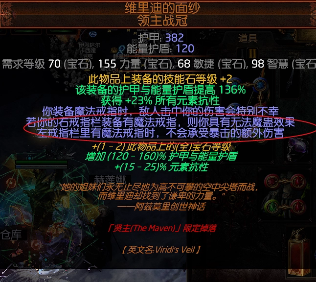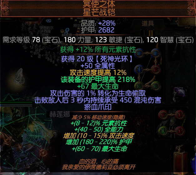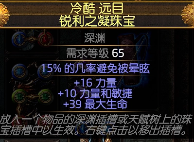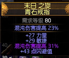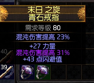 项链:隐逝(涂油选择主权),补充属性(弥补力量和敏捷的缺失),最关键的是能额外开启一个绝望效果。