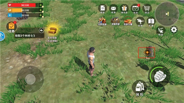 玩家能够在右上角查看完整地图,遇到物资时点击领取即可。