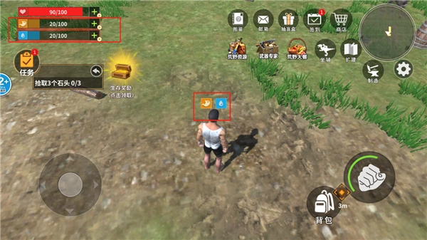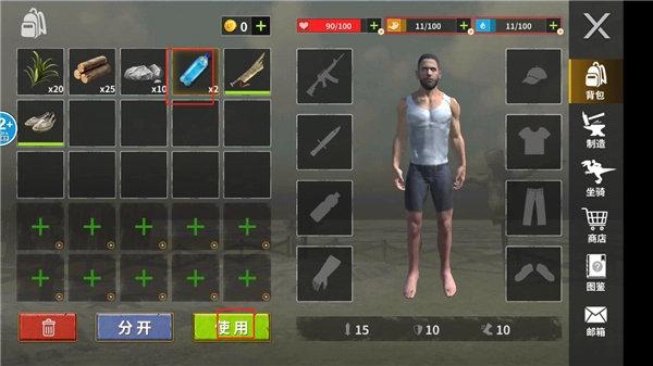 接下来我们点击背包,选中矿泉水,点击使用就能让角色恢复状态。