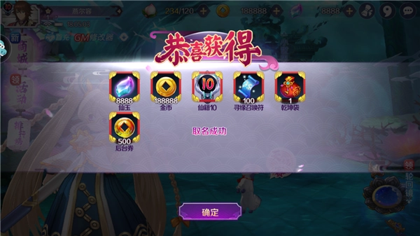 取名成功之后就可以获得一系列的奖励。