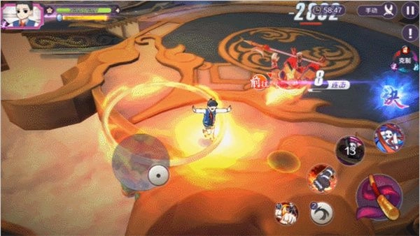 哪吒双拳向前挥出,能对范围内敌人造成眩晕,同时将其击退并附加额外物理伤害。该技能控制效果出众,可与【风火轮】搭配形成流畅连招:先借助风火轮快速突进到敌人身旁,接着找准方向用飞拳击晕目标,最后再用【乾坤圈】全力痛击对手!