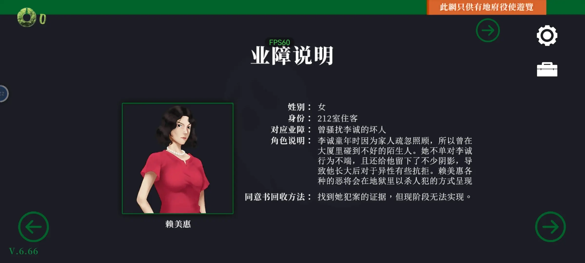 陈伯与李道言皆为鬼役,二人性格迥异,一者冷漠,一者热忱。李诚唯有真心忏悔过错,方能取得业障解除书——此文书亦被称为搬迁同意书。故而,游戏的主角便非他莫属了。