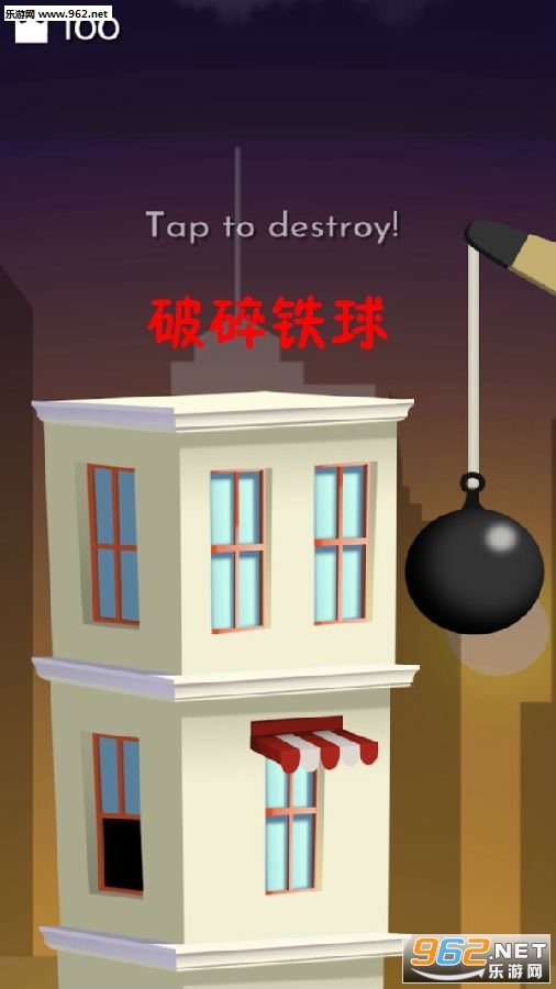 这是一款暴力拆房子的游戏,玩法十分简单,玩家只需操控铁球砸向房子就行。